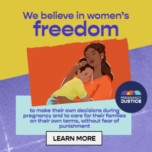 Justicia del embarazo advances and defends the rights of pregnant people, no matter if they give birth, experience a pregnancy loss, or have an abortion. No one should lose their rights because of pregnancy.